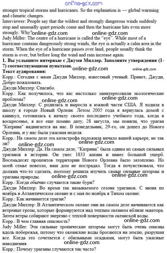 Готовые домашние задания по Английскому языку за 10 класс Учебник Афанасьева, Михеева Rainbow Базовый уровень 2016 - Step 11 Unit 3. In Harmony with Nature 1