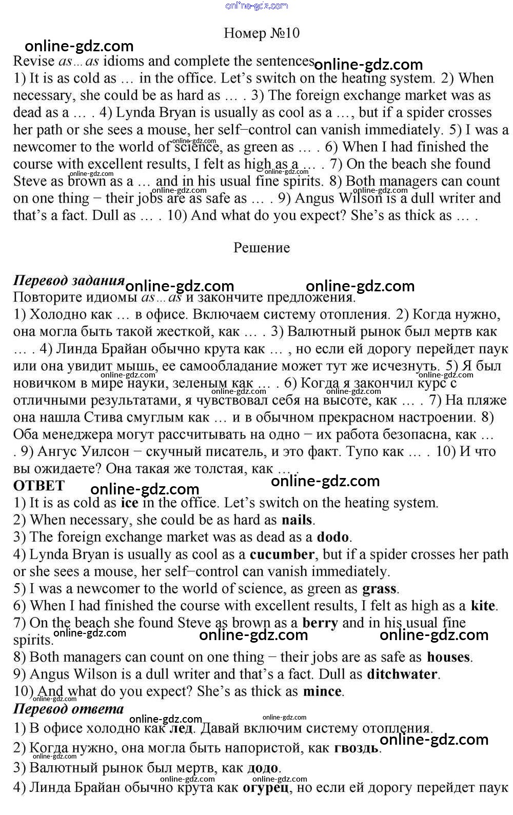 Готовые домашние задания по Английскому языку за 10 класс Учебник Афанасьева, Михеева Rainbow Базовый уровень 2016 - Step 11 Unit 3. In Harmony with Nature 10