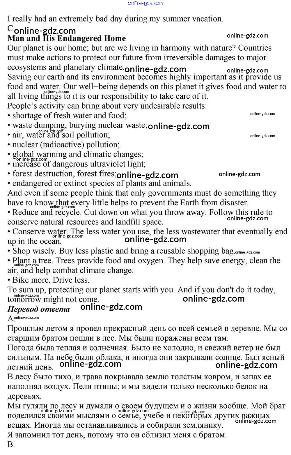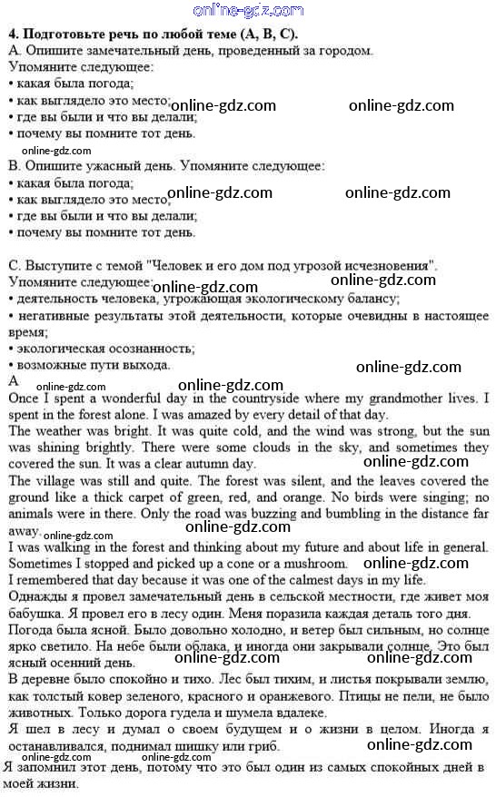 Готовые домашние задания по Английскому языку за 10 класс Учебник Афанасьева, Михеева Rainbow Базовый уровень 2016 - Step 11 Unit 3. In Harmony with Nature 4