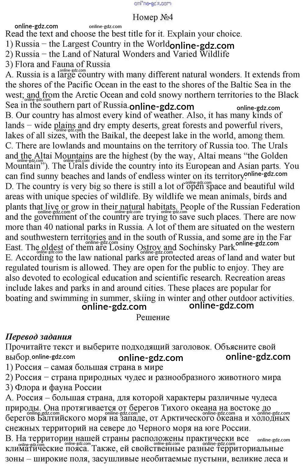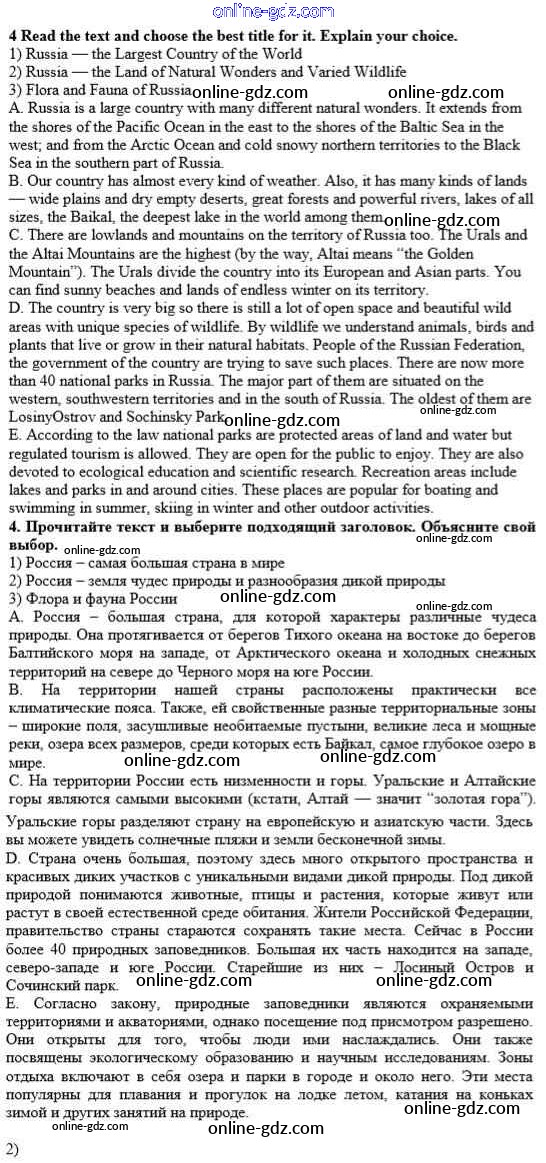 Готовые домашние задания по Английскому языку за 10 класс Учебник Афанасьева, Михеева Rainbow Базовый уровень 2016 - Step 4 Unit 3. In Harmony with Nature 4