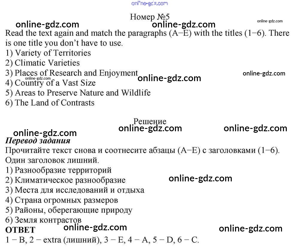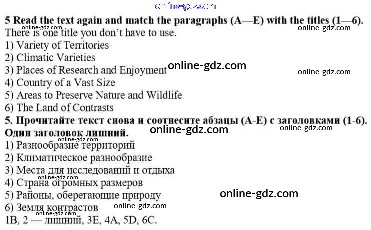 Готовые домашние задания по Английскому языку за 10 класс Учебник Афанасьева, Михеева Rainbow Базовый уровень 2016 - Step 4 Unit 3. In Harmony with Nature 5