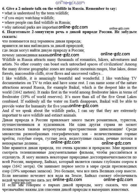 Готовые домашние задания по Английскому языку за 10 класс Учебник Афанасьева, Михеева Rainbow Базовый уровень 2016 - Step 4 Unit 3. In Harmony with Nature 6