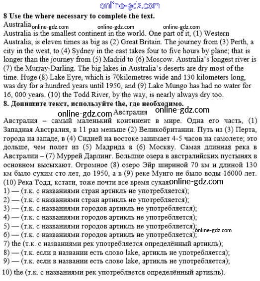 Готовые домашние задания по Английскому языку за 10 класс Учебник Афанасьева, Михеева Rainbow Базовый уровень 2016 - Step 4 Unit 3. In Harmony with Nature 8