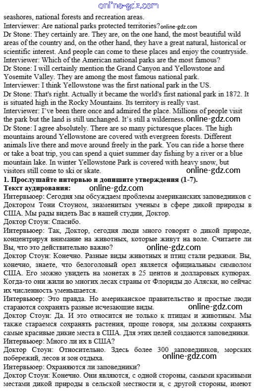 Готовые домашние задания по Английскому языку за 10 класс Учебник Афанасьева, Михеева Rainbow Базовый уровень 2016 - Step 5 Unit 3. In Harmony with Nature 1