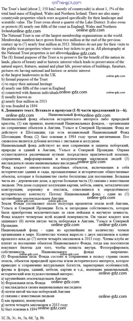 Готовые домашние задания по Английскому языку за 10 класс Учебник Афанасьева, Михеева Rainbow Базовый уровень 2016 - Step 5 Unit 3. In Harmony with Nature 6