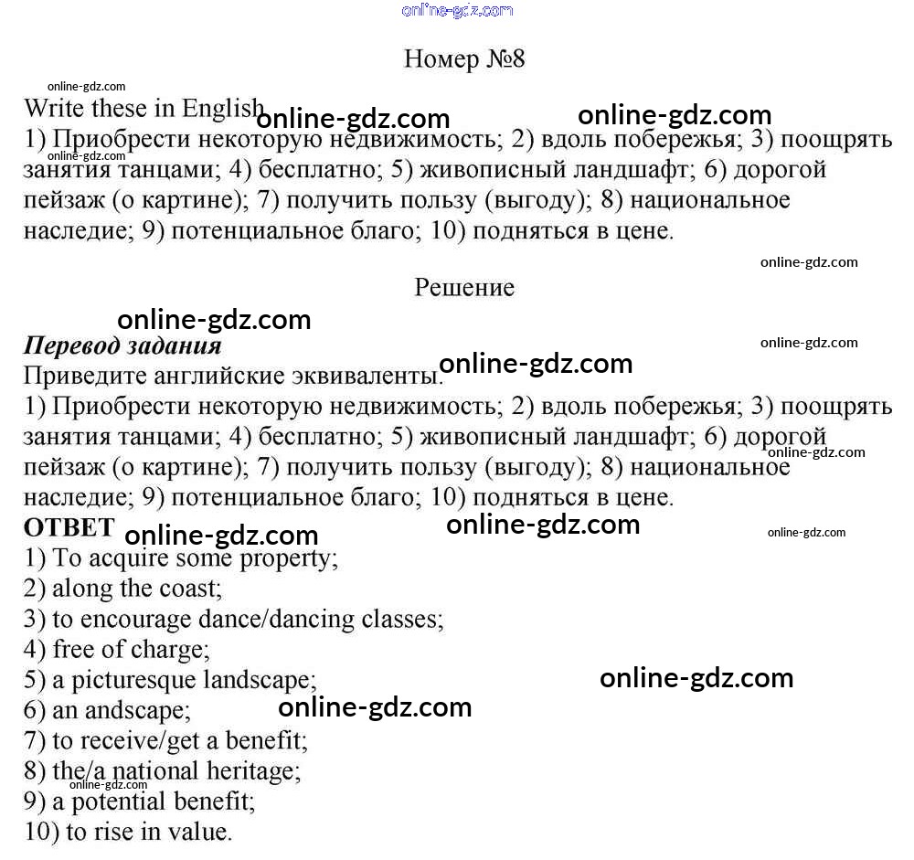 Готовые домашние задания по Английскому языку за 10 класс Учебник Афанасьева, Михеева Rainbow Базовый уровень 2016 - Step 5 Unit 3. In Harmony with Nature 8