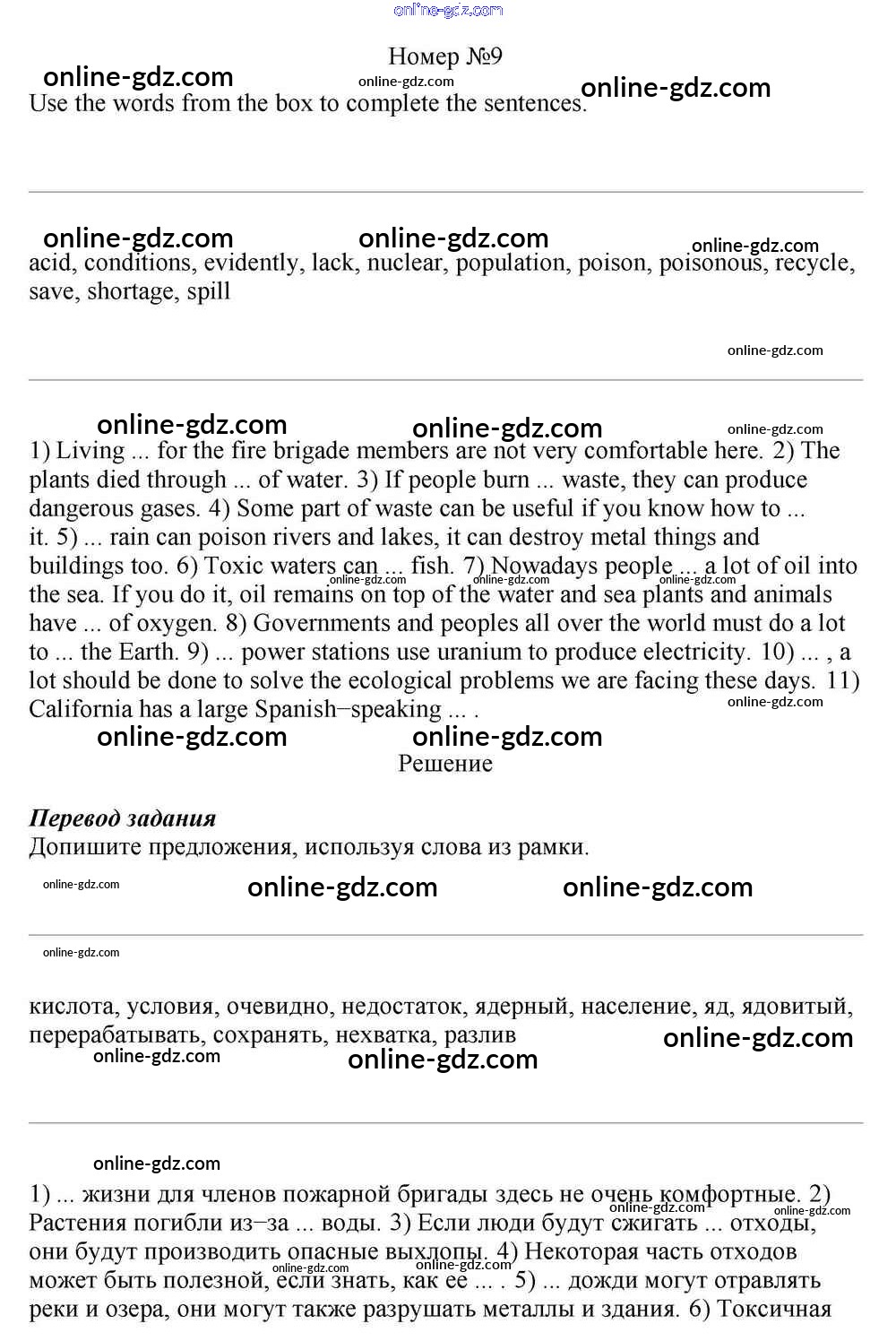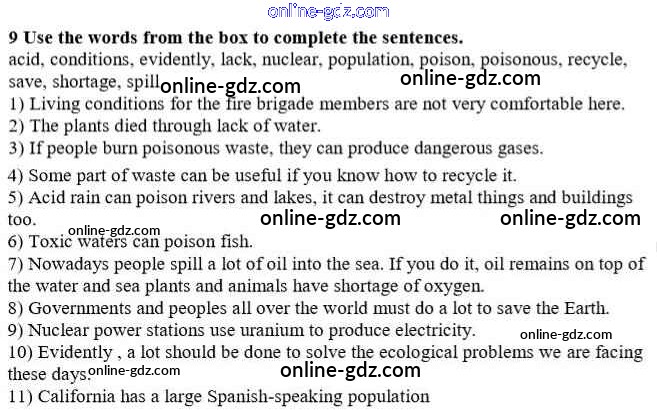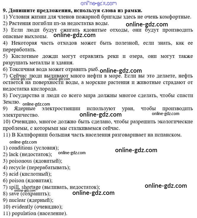 Готовые домашние задания по Английскому языку за 10 класс Учебник Афанасьева, Михеева Rainbow Базовый уровень 2016 - Step 7 Unit 3. In Harmony with Nature 9