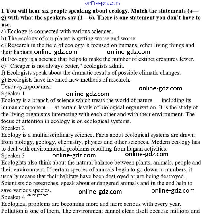 Готовые домашние задания по Английскому языку за 10 класс Учебник Афанасьева, Михеева Rainbow Базовый уровень 2016 - Step 8 Unit 3. In Harmony with Nature 1