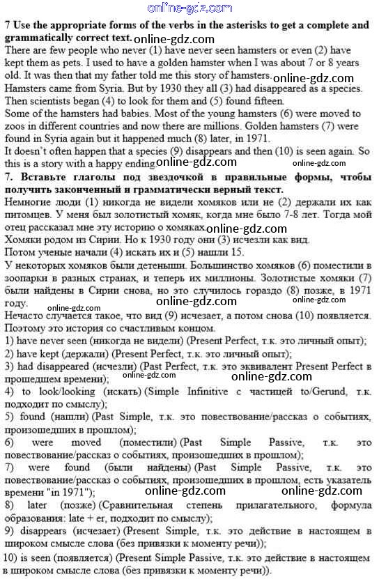 Готовые домашние задания по Английскому языку за 10 класс Учебник Афанасьева, Михеева Rainbow Базовый уровень 2016 - Step 9 Unit 3. In Harmony with Nature 7