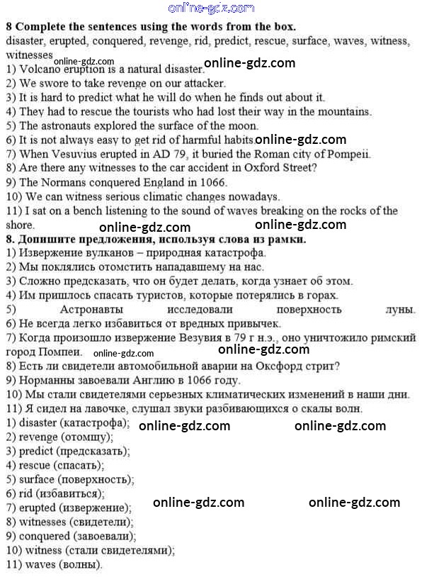 Готовые домашние задания по Английскому языку за 10 класс Учебник Афанасьева, Михеева Rainbow Базовый уровень 2016 - Step 9 Unit 3. In Harmony with Nature 8