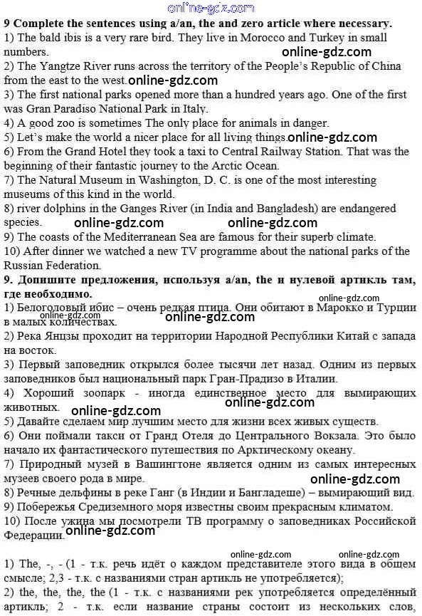 Готовые домашние задания по Английскому языку за 10 класс Учебник Афанасьева, Михеева Rainbow Базовый уровень 2016 - Step 9 Unit 3. In Harmony with Nature 9