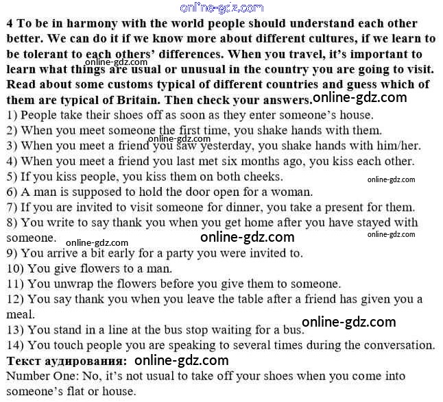 Готовые домашние задания по Английскому языку за 10 класс Учебник Афанасьева, Михеева Rainbow Базовый уровень 2016 - Step 10 Unit 4. In Harmony with the World 4