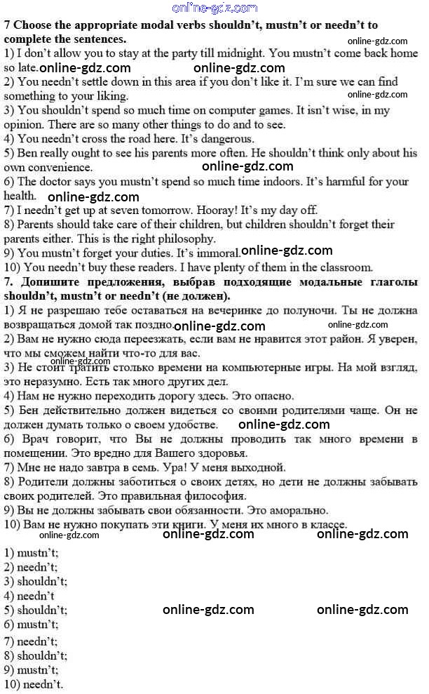 Готовые домашние задания по Английскому языку за 10 класс Учебник Афанасьева, Михеева Rainbow Базовый уровень 2016 - Step 10 Unit 4. In Harmony with the World 7