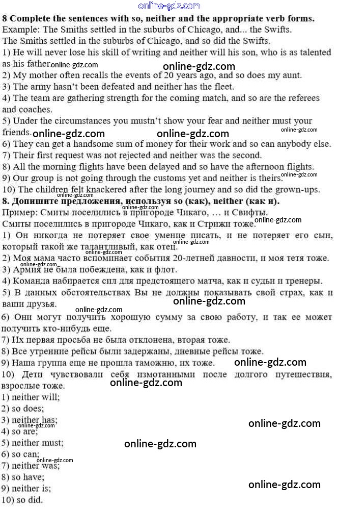 Готовые домашние задания по Английскому языку за 10 класс Учебник Афанасьева, Михеева Rainbow Базовый уровень 2016 - Step 11 Unit 4. In Harmony with the World 8