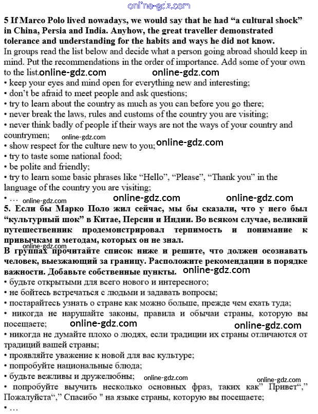 Готовые домашние задания по Английскому языку за 10 класс Учебник Афанасьева, Михеева Rainbow Базовый уровень 2016 - Step 9 Unit 4. In Harmony with the World 5