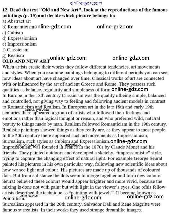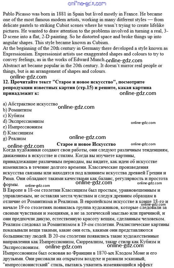 Готовые домашние задания по Английскому языку за 10 класс Учебник Афанасьева, Михеева Углубленный уровень 2014 - Unit 1. Man the Creator 12