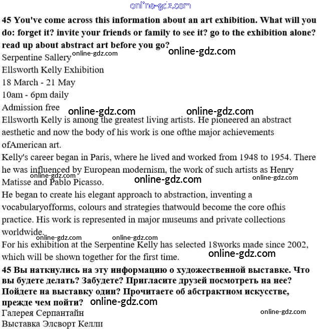 Готовые домашние задания по Английскому языку за 10 класс Учебник Афанасьева, Михеева Углубленный уровень 2014 - Unit 1. Man the Creator 45