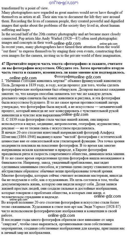 Готовые домашние задания по Английскому языку за 10 класс Учебник Афанасьева, Михеева Углубленный уровень 2014 - Unit 1. Man the Creator 47