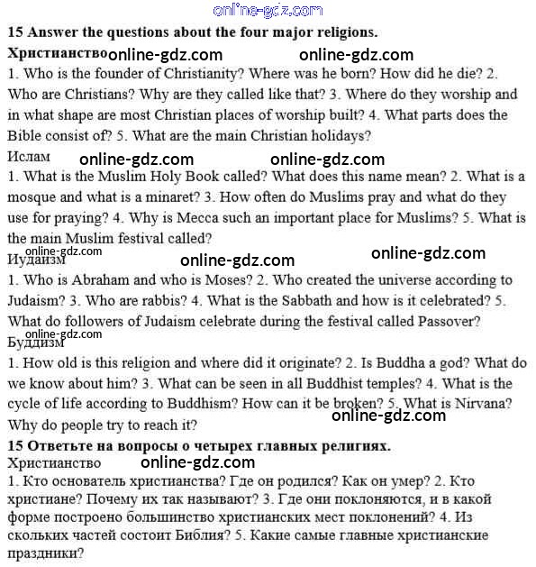 Готовые домашние задания по Английскому языку за 10 класс Учебник Афанасьева, Михеева Углубленный уровень 2014 - Unit 2. Man the Beliver 15