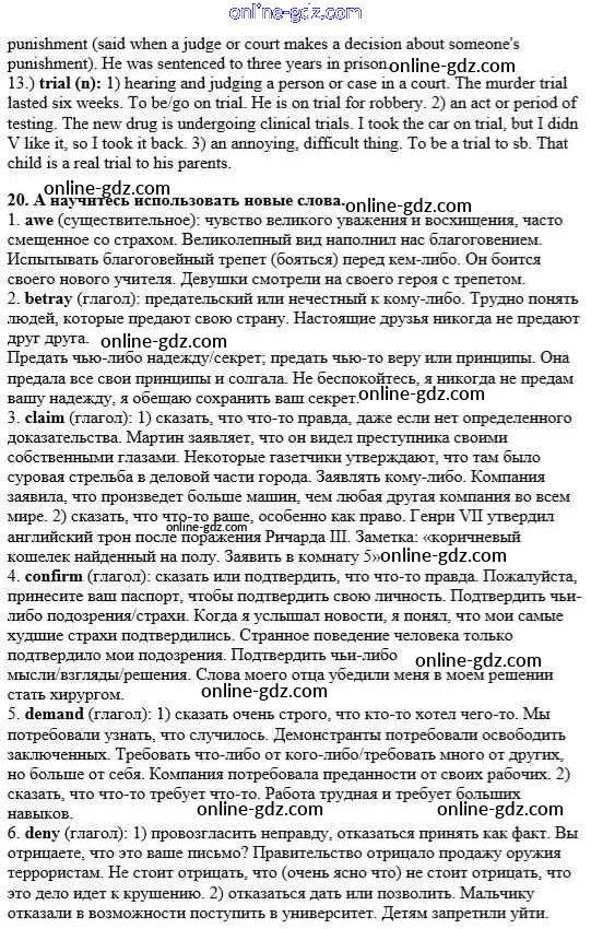 Готовые домашние задания по Английскому языку за 10 класс Учебник Афанасьева, Михеева Углубленный уровень 2014 - Unit 2. Man the Beliver 20