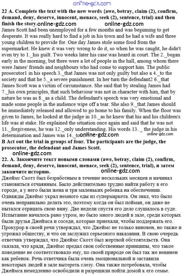 Готовые домашние задания по Английскому языку за 10 класс Учебник Афанасьева, Михеева Углубленный уровень 2014 - Unit 2. Man the Beliver 22