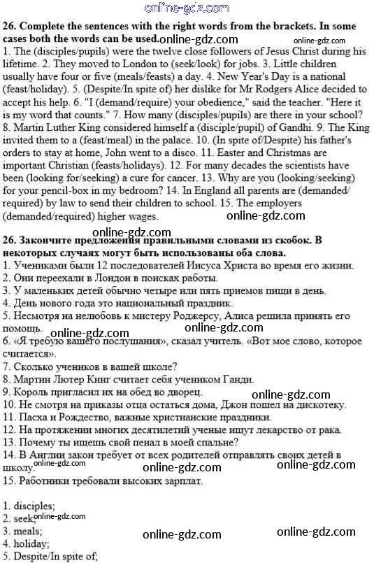 Готовые домашние задания по Английскому языку за 10 класс Учебник Афанасьева, Михеева Углубленный уровень 2014 - Unit 2. Man the Beliver 26