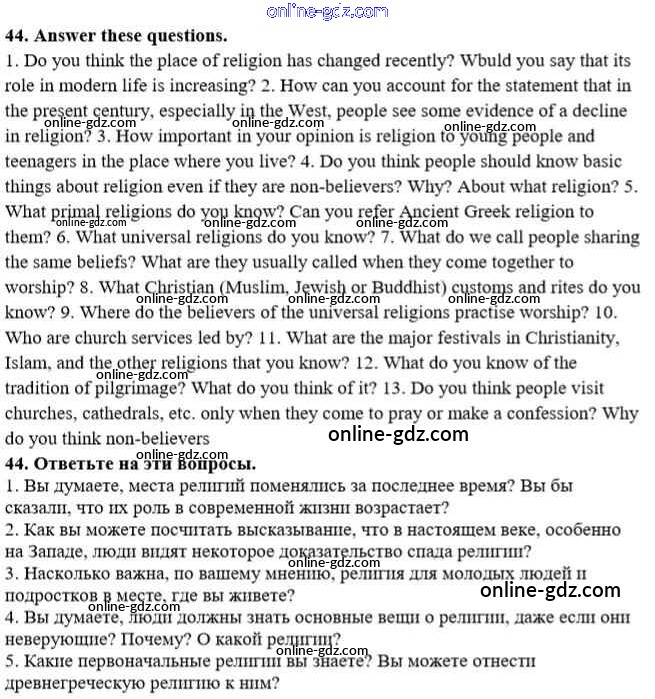 Готовые домашние задания по Английскому языку за 10 класс Учебник Афанасьева, Михеева Углубленный уровень 2014 - Unit 2. Man the Beliver 44