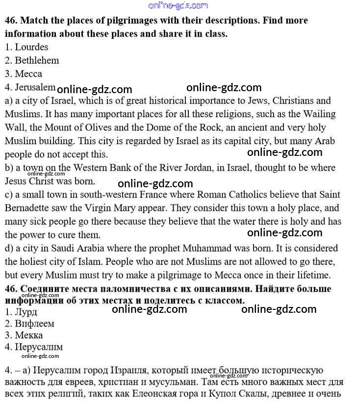 Готовые домашние задания по Английскому языку за 10 класс Учебник Афанасьева, Михеева Углубленный уровень 2014 - Unit 2. Man the Beliver 46