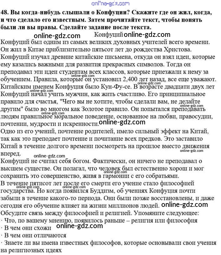 Готовые домашние задания по Английскому языку за 10 класс Учебник Афанасьева, Михеева Углубленный уровень 2014 - Unit 2. Man the Beliver 48