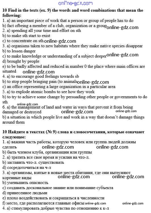 Готовые домашние задания по Английскому языку за 10 класс Учебник Афанасьева, Михеева Углубленный уровень 2014 - Unit 3. Man - the Child of Nature 10