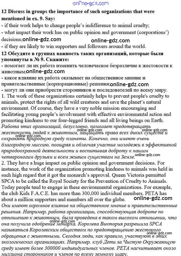 Готовые домашние задания по Английскому языку за 10 класс Учебник Афанасьева, Михеева Углубленный уровень 2014 - Unit 3. Man - the Child of Nature 12