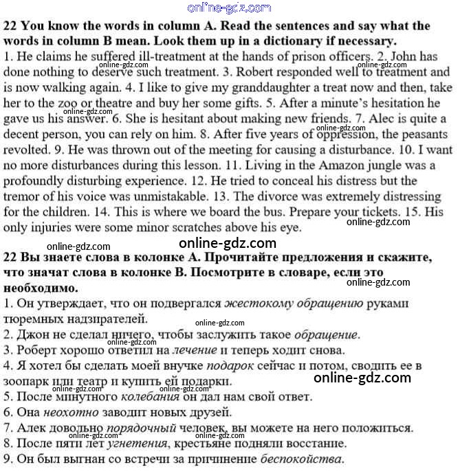 Готовые домашние задания по Английскому языку за 10 класс Учебник Афанасьева, Михеева Углубленный уровень 2014 - Unit 3. Man - the Child of Nature 22
