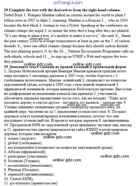 Готовые домашние задания по Английскому языку за 10 класс Учебник Афанасьева, Михеева Углубленный уровень 2014 - Unit 3. Man - the Child of Nature 29
