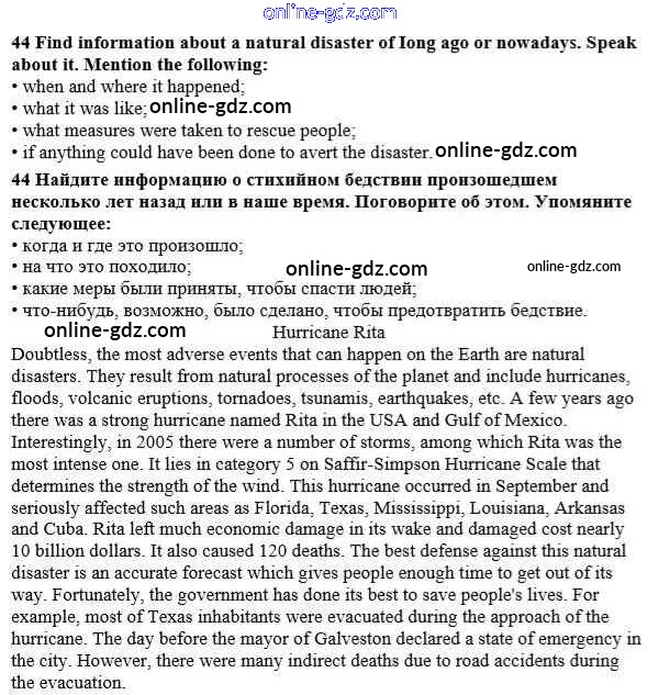 Готовые домашние задания по Английскому языку за 10 класс Учебник Афанасьева, Михеева Углубленный уровень 2014 - Unit 3. Man - the Child of Nature 44