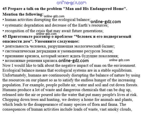Готовые домашние задания по Английскому языку за 10 класс Учебник Афанасьева, Михеева Углубленный уровень 2014 - Unit 3. Man - the Child of Nature 45