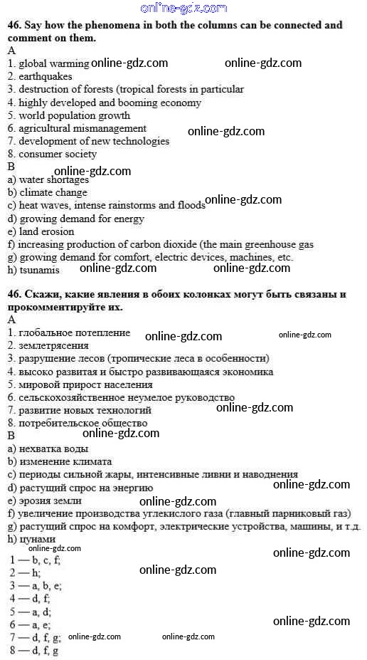 Готовые домашние задания по Английскому языку за 10 класс Учебник Афанасьева, Михеева Углубленный уровень 2014 - Unit 3. Man - the Child of Nature 46