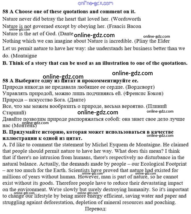 Готовые домашние задания по Английскому языку за 10 класс Учебник Афанасьева, Михеева Углубленный уровень 2014 - Unit 3. Man - the Child of Nature 58