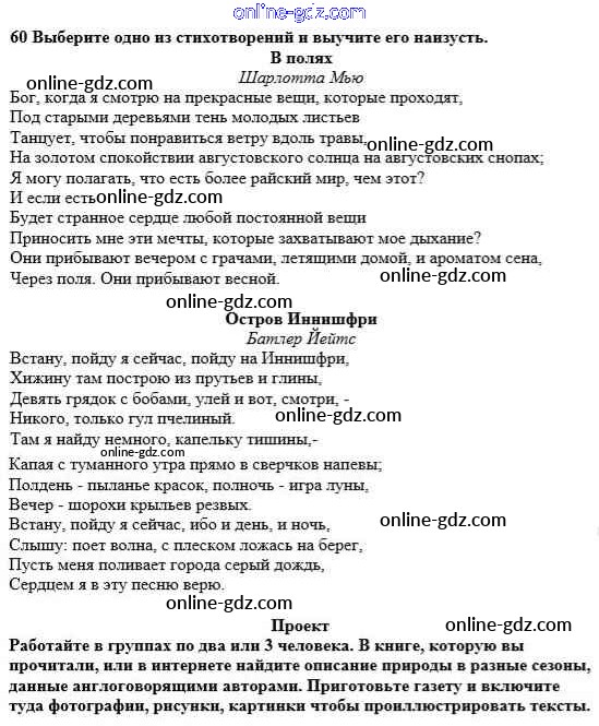 Готовые домашние задания по Английскому языку за 10 класс Учебник Афанасьева, Михеева Углубленный уровень 2014 - Unit 3. Man - the Child of Nature 60