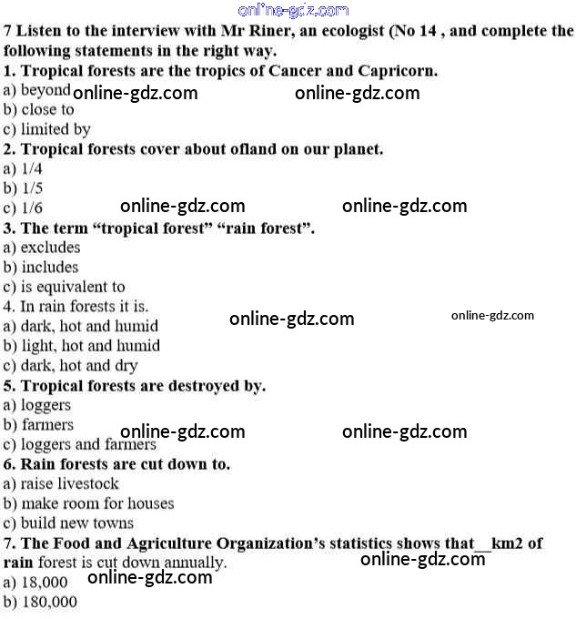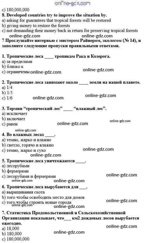 Готовые домашние задания по Английскому языку за 10 класс Учебник Афанасьева, Михеева Углубленный уровень 2014 - Unit 3. Man - the Child of Nature 7