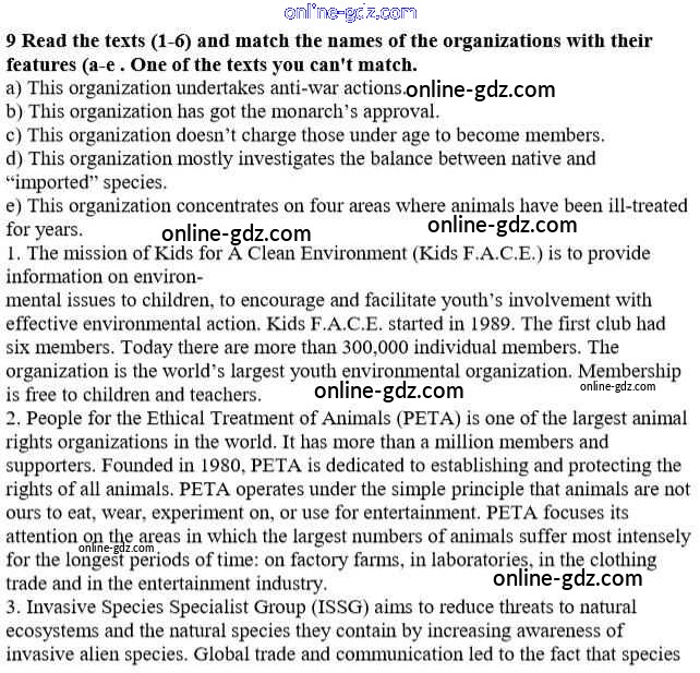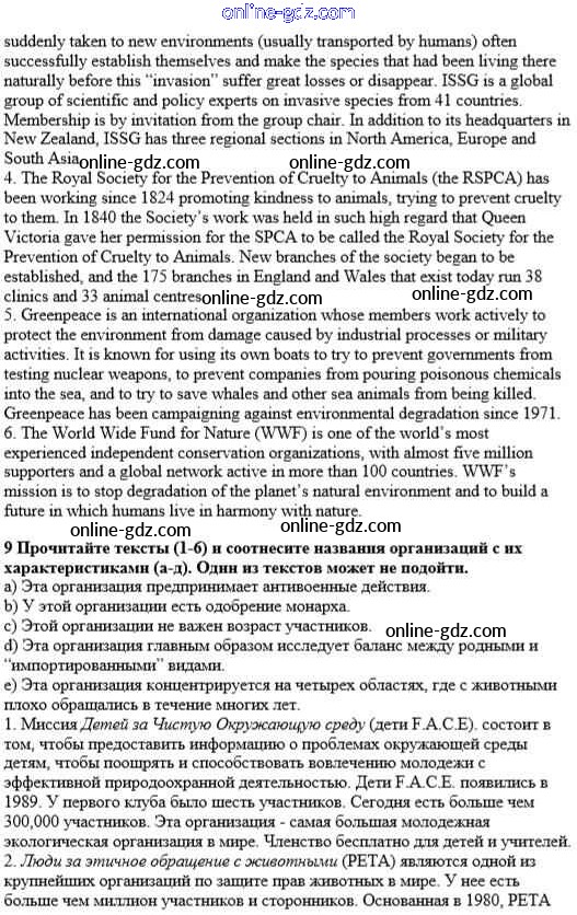 Готовые домашние задания по Английскому языку за 10 класс Учебник Афанасьева, Михеева Углубленный уровень 2014 - Unit 3. Man - the Child of Nature 9