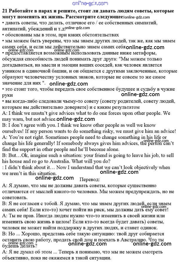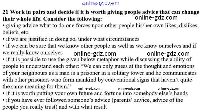 Готовые домашние задания по Английскому языку за 10 класс Учебник Афанасьева, Михеева Углубленный уровень 2014 - Unit 4. Man - the Speeker of Happiness 21