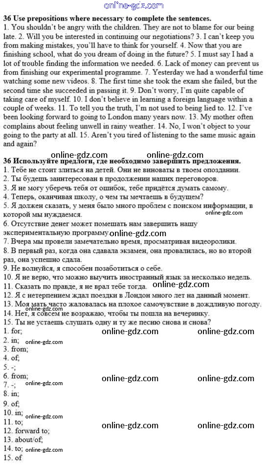 Готовые домашние задания по Английскому языку за 10 класс Учебник Афанасьева, Михеева Углубленный уровень 2014 - Unit 4. Man - the Speeker of Happiness 36