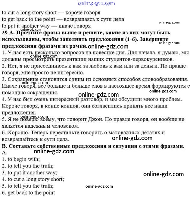 Готовые домашние задания по Английскому языку за 10 класс Учебник Афанасьева, Михеева Углубленный уровень 2014 - Unit 4. Man - the Speeker of Happiness 39