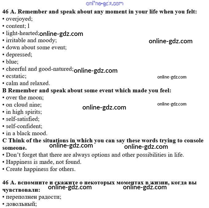 Готовые домашние задания по Английскому языку за 10 класс Учебник Афанасьева, Михеева Углубленный уровень 2014 - Unit 4. Man - the Speeker of Happiness 46