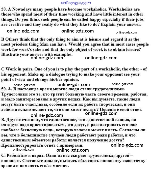 Готовые домашние задания по Английскому языку за 10 класс Учебник Афанасьева, Михеева Углубленный уровень 2014 - Unit 4. Man - the Speeker of Happiness 50