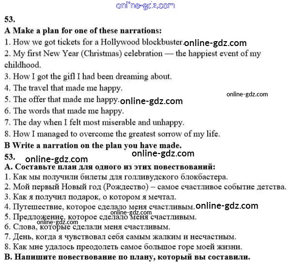 Готовые домашние задания по Английскому языку за 10 класс Учебник Афанасьева, Михеева Углубленный уровень 2014 - Unit 4. Man - the Speeker of Happiness 53