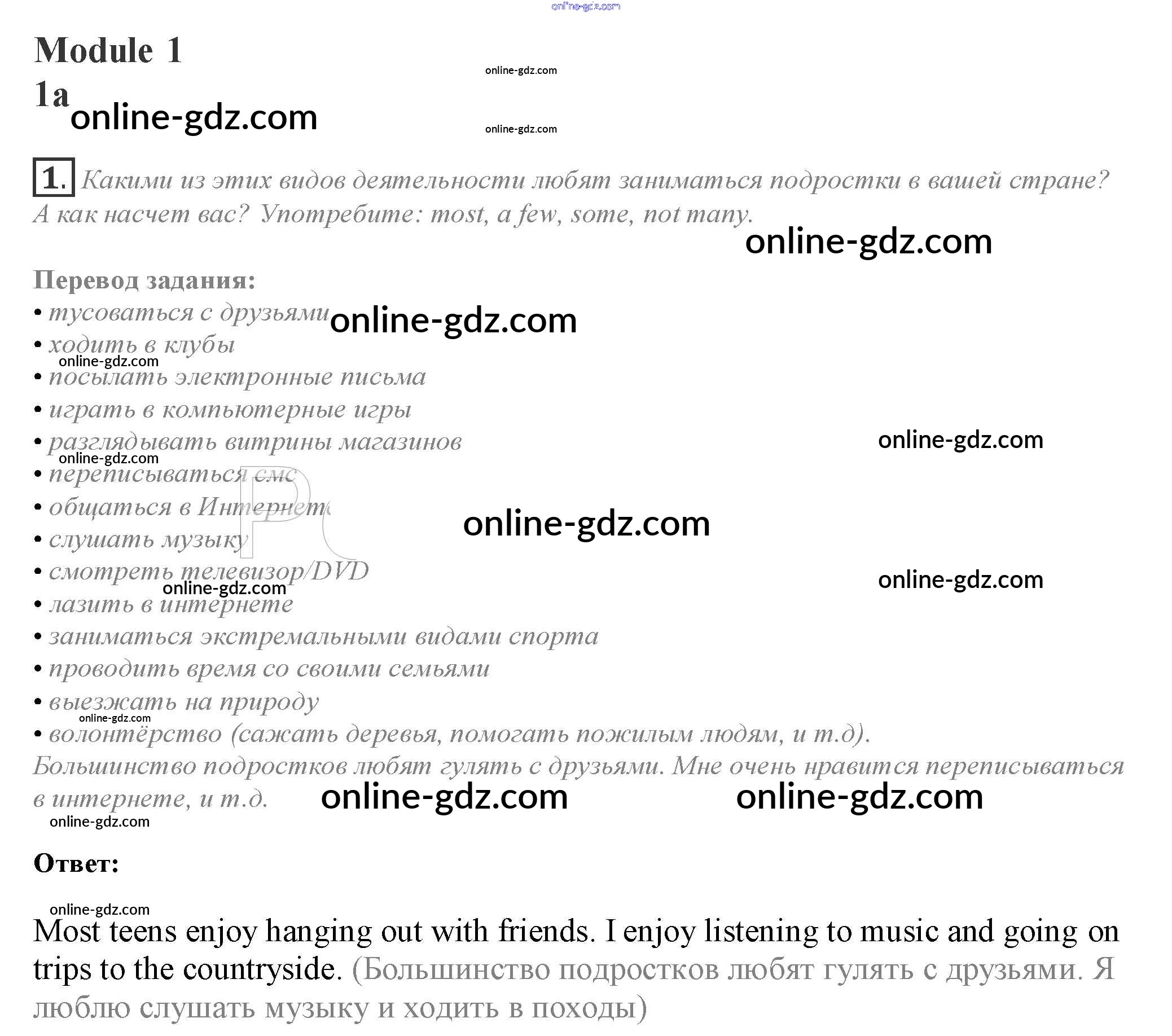 Готовые домашние задания по Английскому языку за 10 класс Учебник Афанасьева, Дули Spotlight 2015 - Часть 1a Module 1 1