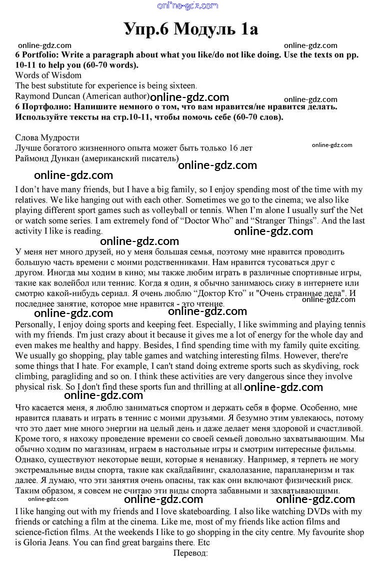 Готовые домашние задания по Английскому языку за 10 класс Учебник Афанасьева, Дули Spotlight 2015 - Часть 1a Module 1 6