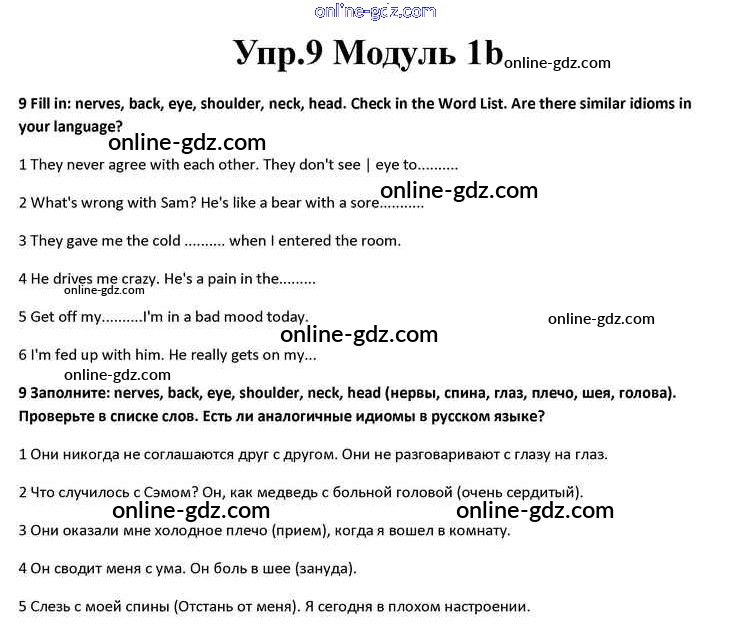 Готовые домашние задания по Английскому языку за 10 класс Учебник Афанасьева, Дули Spotlight 2015 - Часть 1b Module 1 9