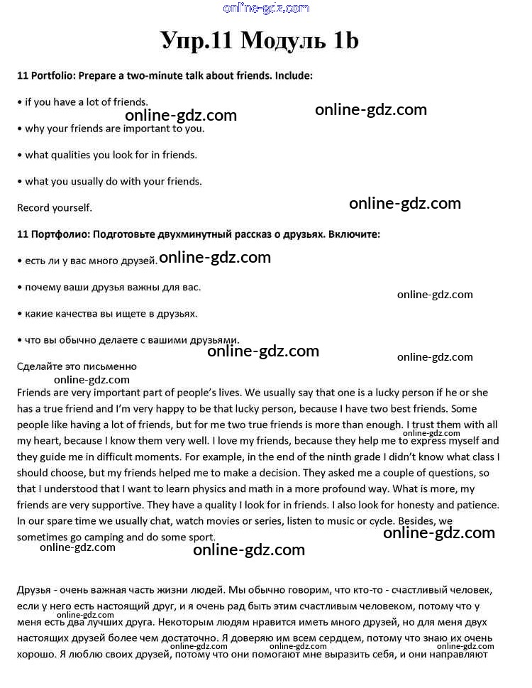 Готовые домашние задания по Английскому языку за 10 класс Учебник Афанасьева, Дули Spotlight 2015 - Часть 1b Module 1 11